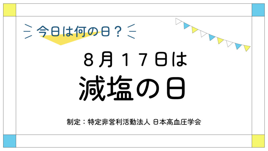 特定非営利活動法人 日本高血圧学会が制定。高血圧の予防や治療において大切な減塩をより多くの人に実践してもらうのが目的。