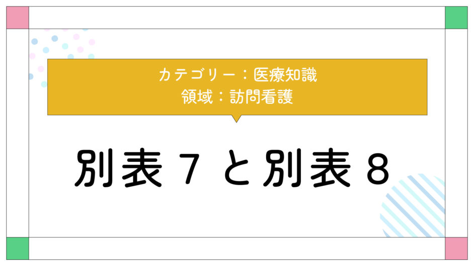 別表7とは、厚生労働大臣が定める「疾病」(特掲診療料の施設基準等別表第7に掲げる疾病等者)のことです。