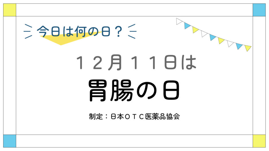 師走にこの一年間を振り返ったとき、大切な胃腸に負担をかけてきたことを思い、胃腸へのいたわりの気持ちを持ってもらいたいと、薬局、ドラッグストアなどで販売されているOTC医薬品(一般用医薬品)の団体である日本OTC医薬品協会が制定。